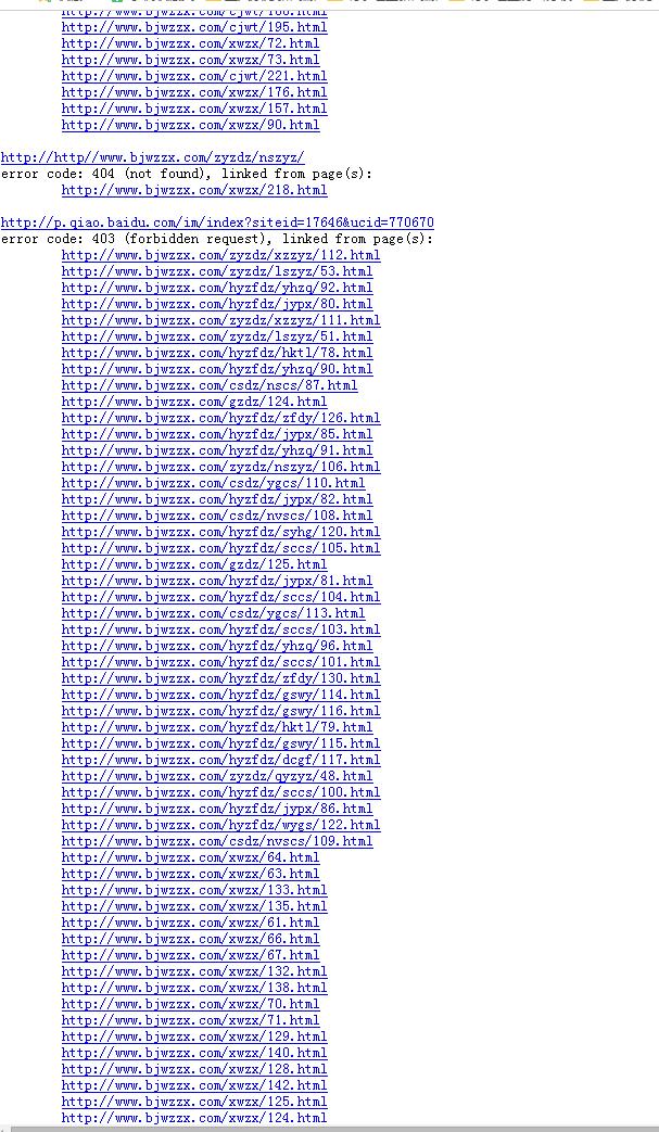 要看蜘蛛访问量有没有下降,蜘蛛访问量少了,抓取的少,自然收录下降。我没有题主的访问日志,就用Xenu简单跑一下,报告指出以下几个问题。