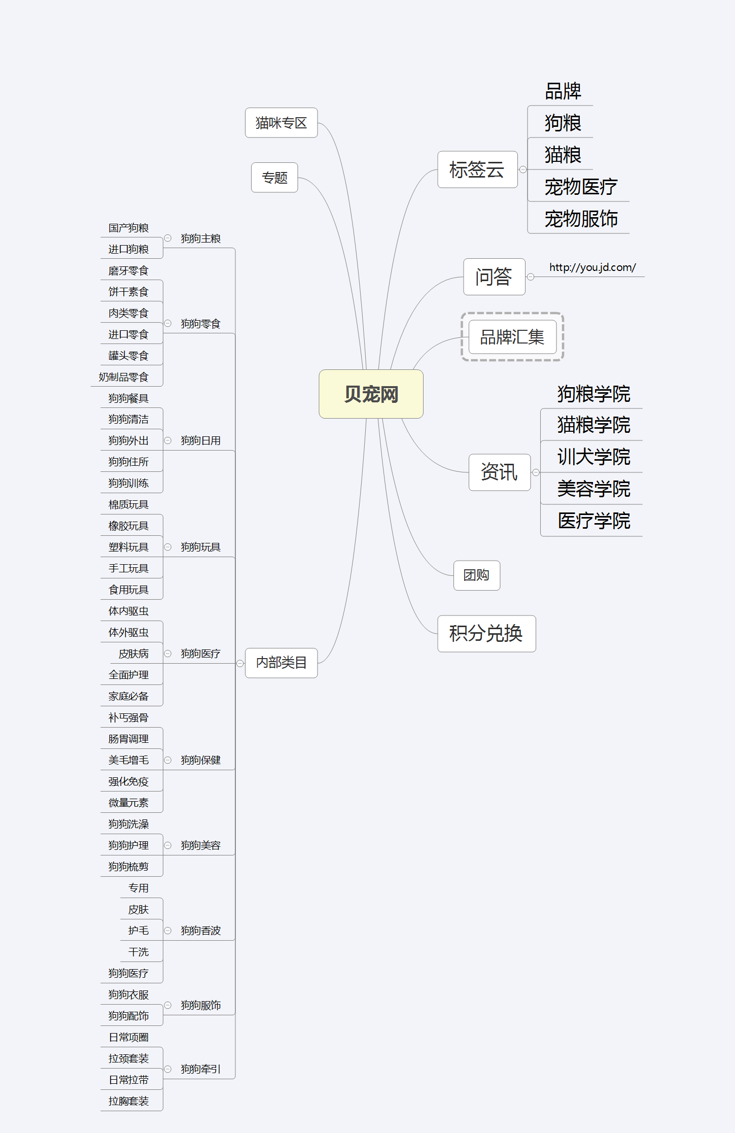首先网站针对的宠物市场,所以首先考虑宠物市场,宠物用品商城,宠物保健,宠物服饰等,具体参考你的类目。