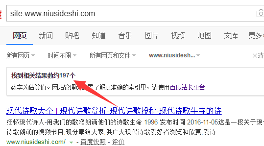 [导读]:请问“牛寺的诗”还要多久百度才放出内页啊,快一年了,还没放出内页,我的网址是:www.niusideshi.com,请大神支招a ### 有收录,只是站长工具上的数据不准。...