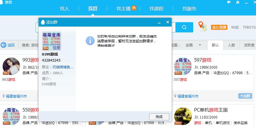 QQ现在审核机制特别的严格,你使用自己的大号加群一天也加不了几个,更不要提小号。建议先养号,然后在说其他的。