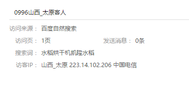 这样的访客是怎么回事,有时候能同时在线15个人以上,对我们的网站有什么影响?但是我自己找的时候,通过搜索词找不到。这是怎么回事,请高手指点一下。我们也是生产水稻烘干机的,但是差不多一星期了,老是这样,开着百度商桥,就没办法工作。