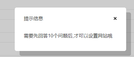 ###需要先「回答」10个问题后,才可以设置网站哦。