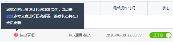 [导读]:RT 网站查询统计代码没问题啊 可是百度推荐缺一直不成功 @@www.kfx8.cn@@ 看来不是只有我一个人有问题啊,明明网站访问数据等什么都 是正常的就是提示安装错误,好郁闷啊...