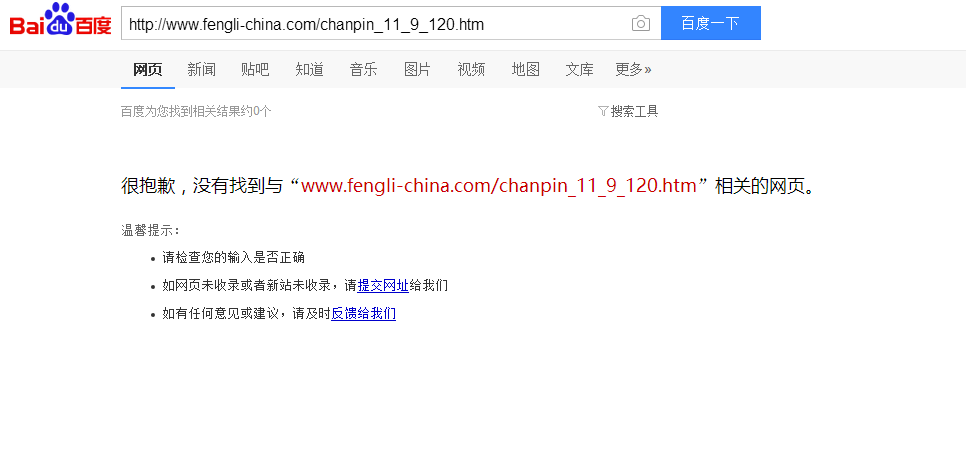 [导读]:搜索下面网址时,没有收录 很抱歉,没有找到与“ www.fengli-china.com/chanpin_11_9_120.htm ”相关的网页。 但搜索这个页面的标题“三聚氰胺粉碎机”的时候却收录了。如下图: 你看...