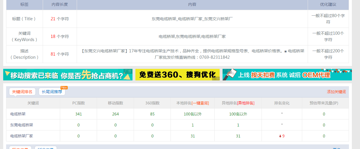 电缆桥架厂家的排名一般在第一页、第二页;可是电缆桥架,这个主产品词却在100名以外,求大神可以给我个优化建议
