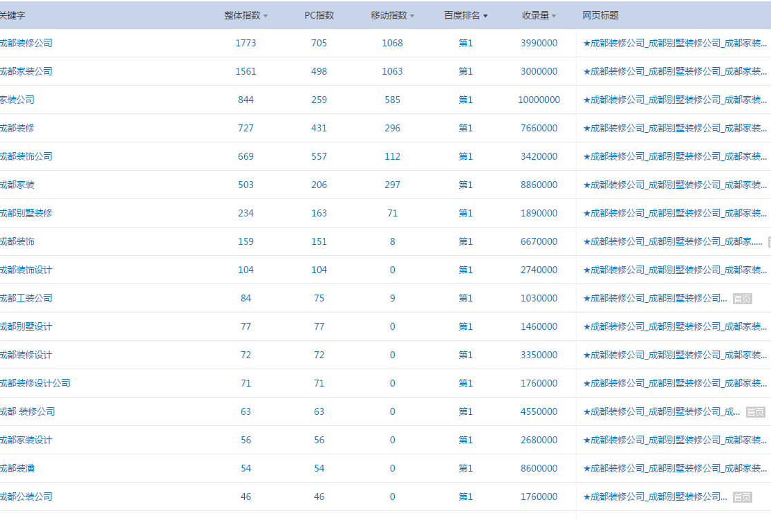 百度搜索“成都装修公司”,前10页基本都是装修类公司首页。竞争不小。