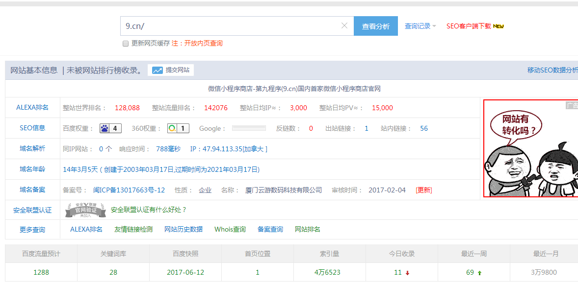 网站5月份改版的,将一级栏目做成二级域名,差不多过去一个月了吧,当初只有勉强权重3,一直担心改版后网站估计连权重2都没,可一个月过去了,收录比之前差多了,最近才有点起色,不过权重居然没掉,反而慢慢到了权重4 ,这网站SEO就我一个人在做,不知道是什么原因导致的,看下有没大神能够知道原因的。可能这就叫置之死地而后生吧! 网站首页:9.cn 二级域名首页有跳转。也许数据只是参考,但是有进步,已经很开心了! 这网站建站到现在差不多5个月时间!