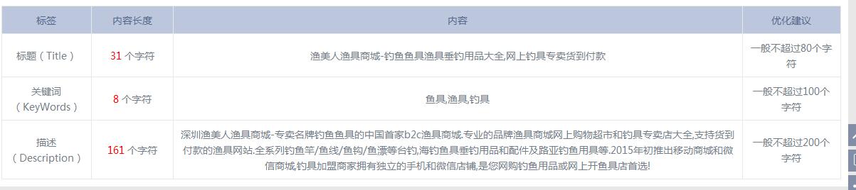 同理我们肯定不只渔具,还有别的商品,同样的道理,设置栏目标题描述关键词中堆砌关键词
