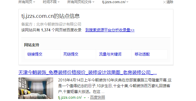 而我负责的这个天津今朝装饰这个网站缺看不到排名