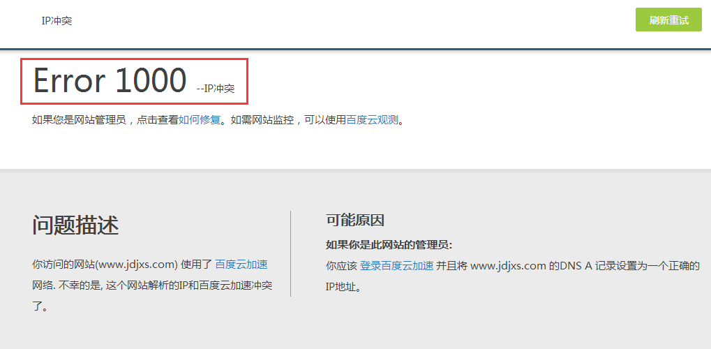 ###百度云加速经常性的会出现这个现象,我使用的是免费的。