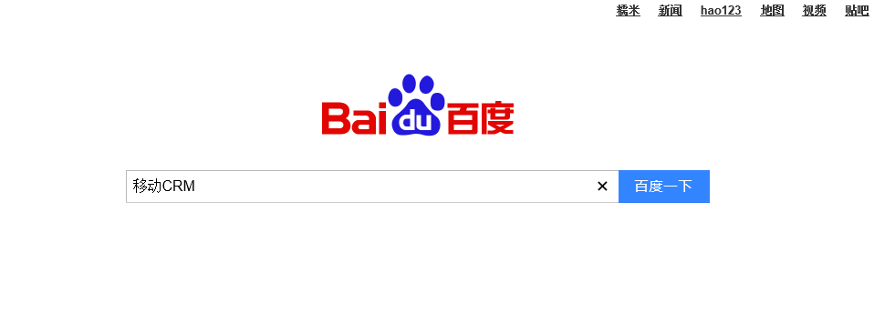 1、首先在百度输入框中输入“移动CRM”进行搜索: