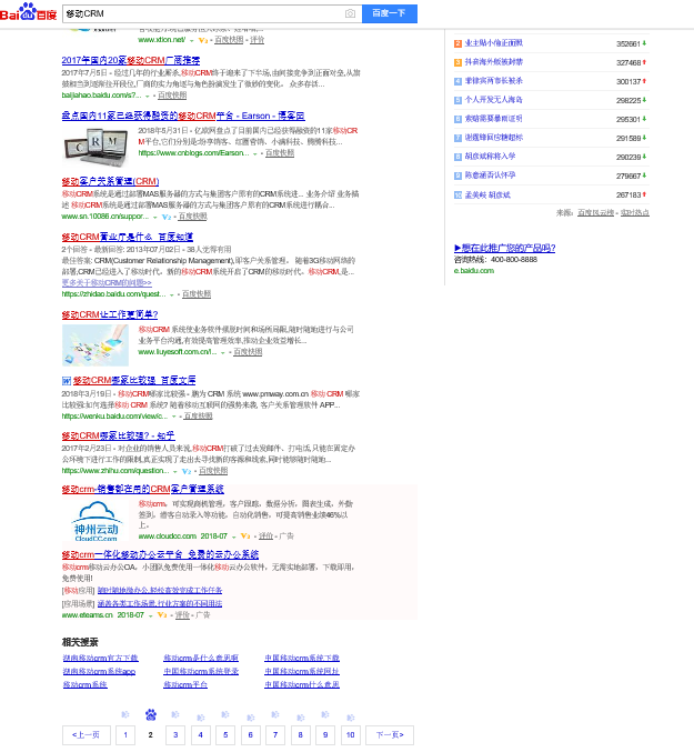 [导读]:刚才遇到一个百度搜索结果的诡异现象,要倒回来才能看到主页收录记录,现象如下: 1、首先在百度输入框中输入“移动CRM”进行搜索: 2、在搜索结果中挨个点击下一页,注...
