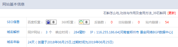 [导读]:写在前面的话,本人小白一枚,看到这个刚上线的新站“39石斛网”,40多个词参与排名, 很是惊讶感觉很吊!~ ,进行了一番分析,请大神指点和吐槽。 一、站外数据查看 先上...