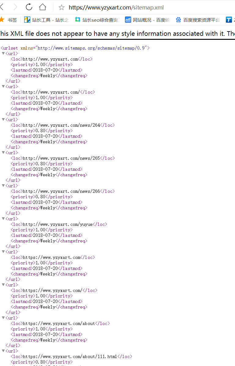 https://[?]艺朝艺夕艺术培训学校/sitemap.xml打开是空白怎么回事啊,我网站做了sitemap但是打开是空白,在第二行也删除了xsl文件,还是空白页,大神求指教