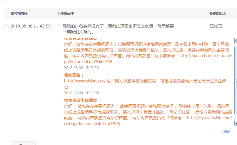 这是我以前在百度站长工具后台反馈的,也没啥用。我的网站