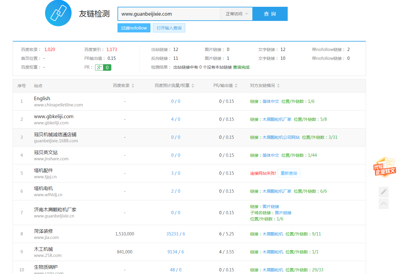 [导读]:友情链接多方有我的 为什么检测显示无反链? 大神帮回答下 谢谢了 我网站:http://www.guanbeijixie.com [?] 友情链接是锚文本,反链是直接贴的网址 ###...
