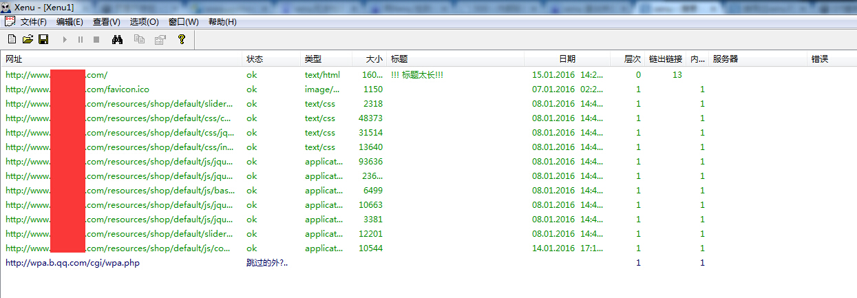 也就是说,我也还没找到答案,如果我找到答案,我回来这里回帖的。如果有大神有方法,让xenu一次性把所有网址都扫完,请不吝赐教!