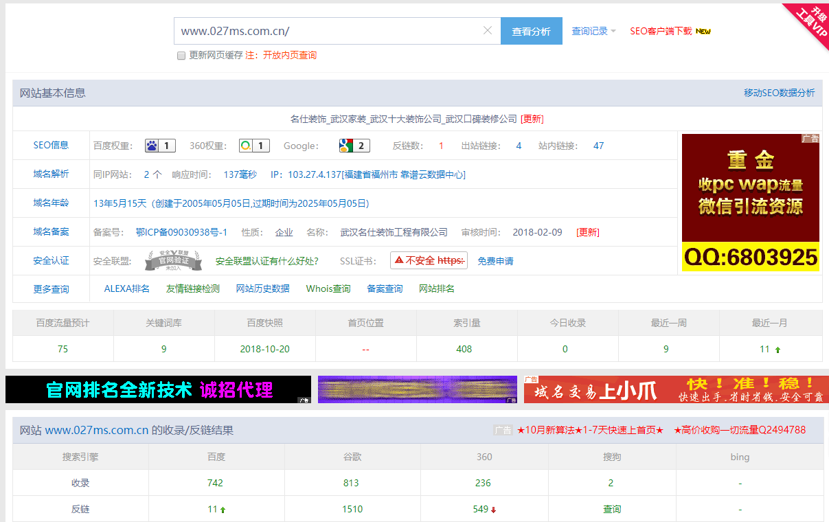 网站的整体SEO基础还是有可以的,拥有一定的流量和收录也正常,域名也有较久的历史,这类网站算是比较成熟的网站了。