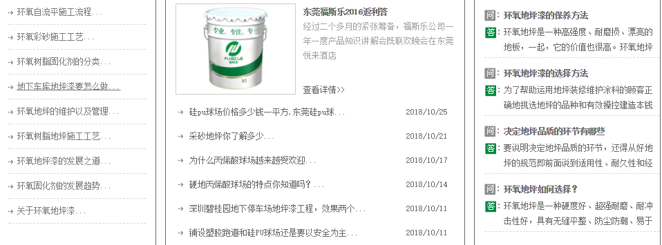 3、资讯页面增加此关键词的资讯文章,并作内链建设安排。同时此次“环氧地坪漆”这个关键词出现的频率过高了,要给其它关键词一些展现的机会。