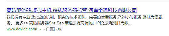 [导读]:突然间发现的,之前也没注意过,这个收录,一直不显示我写的内容。这种情况是怎么照成的? 高防服务器www.ddvidc.com 百度收录截图: 网页代码截图: 这个很正常哈,不用担心...