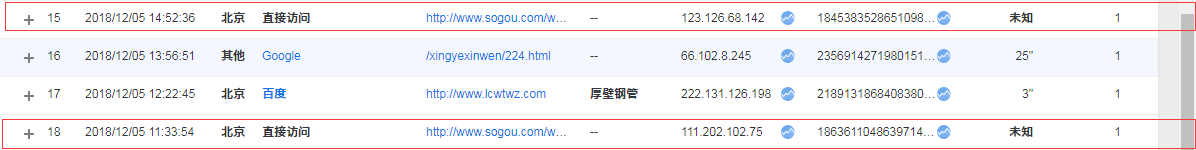 ###没遇到过,把链接放到浏览器里面看看是什么页面。感觉都是通过搜狗Site来的,是有人在刷什么吗?