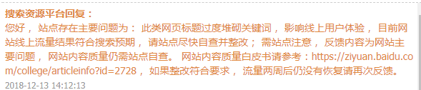 我的网站近期排名全部都没了,给百度反馈了两次,一次说我标题堆砌,一次说符合预期。那么该相信哪个呢?到底该不该修改标题呢?