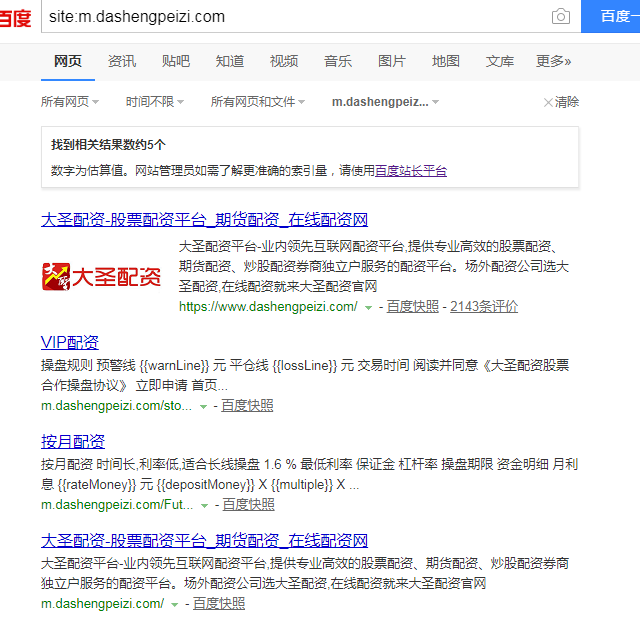 第二个: 已经收录五个了 建议你做好移动适配关系 会慢慢收录了。也可以给移动端发一些外链。但是移动端的流量基本上让百家号占据了 建议你可以申请一个企业百家号这样有利于排名