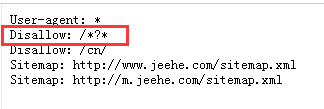 画红框的这段代码的意思就是,不允许蜘蛛来抓 带有?结尾的任意数值
