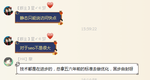 一直以为是真静态比伪静态好,所以新作了一个网站,费了很大的劲,改成真静态,但是今天在一个群里讨论网站优化的时候,被狠狠的鄙视了一番,群友反馈SEO不想要真静态,使用真静态是“技术都是在进步的,总拿五六年前的标准去做优化,固步自封呀”