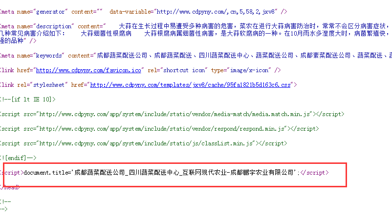 [导读]:如上图,是网站新闻页面打开后显示的标题,然后我查看这个页面的源代码,看到的Title又不一样,是什么原因?? 如下图,网页地址:http://www.cdpyny.com/news/58-cn.html [?] 查看一下...