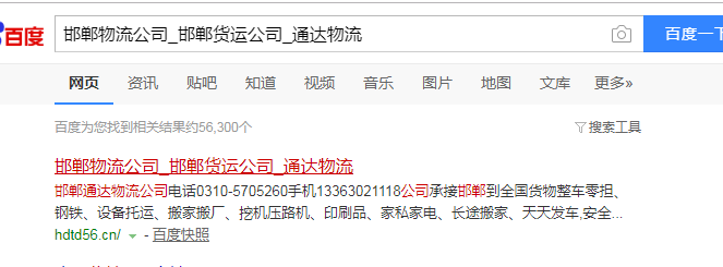 | <meta name="description" content="邯郸物流公司通达物流电话0310-5705260手机13363021118公司承接邯郸到全国整车零担、设备托运、搬家搬厂、挖机压路机、印刷品、家私家电、长途搬家、天天发车,安全快捷、货物保险:!门到门服务, 等通知发货,回单付运输,货物保险,货物运输时时跟踪,只要你有想要解决的物流问题,可以为你设计出一道适合双方互利的物流方案。 |