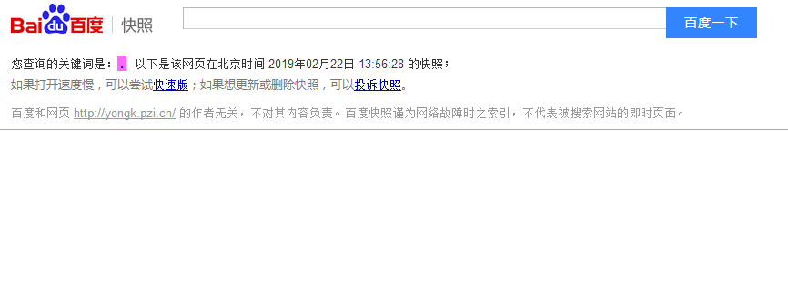 从搜索框内点击百度快照显示内容是白页http://yongk.pzi.cn/[?]