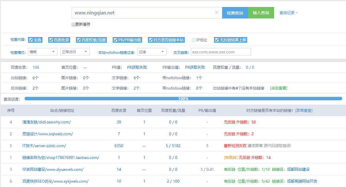 [导读]:domain本来也不是查友链的,是查反链的,你当然查不出来。友链可以用站长工具来查。 ### 友情链接的查询用站长工具的友情链接检测, domain指令是查反链的,友情链接一般查不...