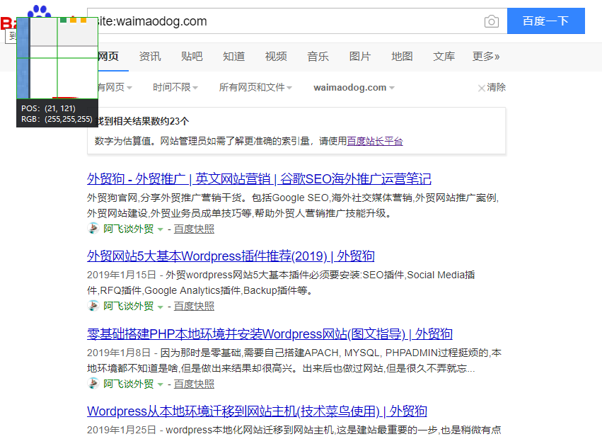 我写了15篇文章,收录了10篇,总页面收录了23个。