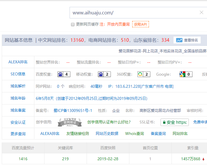 ###你发的这两个链接都是三级路径,这个没什么可比性。为什么A的排名比B的排名好,主要就是A网站整体的权重比B的高,而且A网站的域名12年了,B网站的域名才6年,这会导致A的内页也会比B的内页权重高,排名自然也会更好,这是最重要的原因。如图: