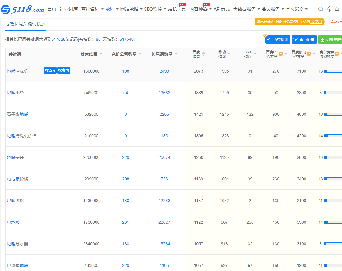 [导读]:地暖类的产品,但不知设什么关键词比较适合?? 可以借助一些工具进行长尾词挖掘,再结合自己的产品参考是否适合 5118在线长尾词挖掘工具当你输入关键词后,5118能将所有...