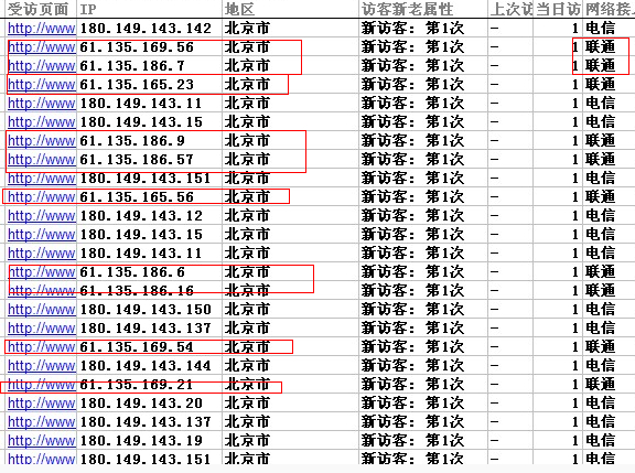 愁啊,总在网站CNZZ后台看到一些连串的IP,如图所示,这些是百度蜘蛛IP?还是异常攻击IP?