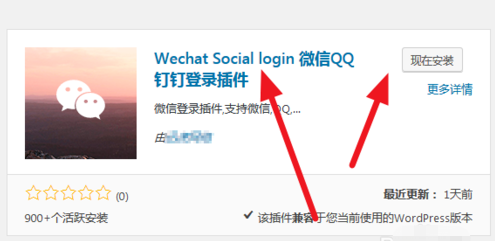 2.在插件市场搜索“wechat social ”出现如下插件,点击“现在安装”