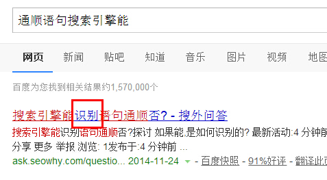 2、这么多年的搜索数据沉淀,如果还不能有一定概率的识别内容通顺完整与否,那还搞啥搜索,而内容识别上的判断跟数据沉淀多少,多久有着重大的关系!这也是为什么搜索引擎这类产品很少有人来竞争的主要原因,并不是有钱就可以做的!显然意见,百度沉淀了这么多年,语义分析已经做的很好了,语句的通顺自然肯定是可以识别的,100%,90%?不知道。