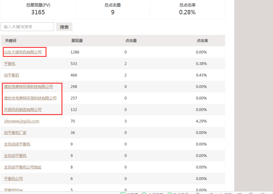 看了你的网站还有数据,有展现的关键词大部分都是一些不相关的关键词带来的,还有一小部分就是你们自己搜索的吧,精准客户不多,所以点击率不高。