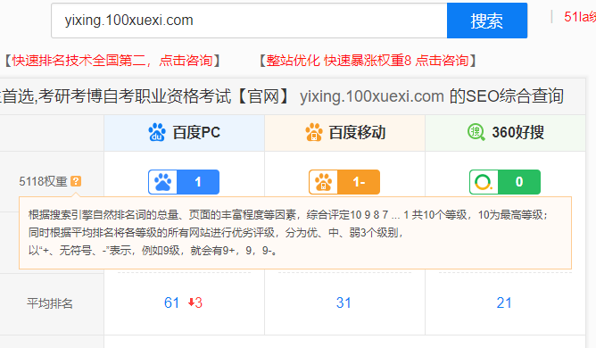 [导读]:有没有高手帮看下我的网站http://yixing.100xuexi.com [?] ,在站长工具看权重是1,在爱站网看权重是0,以哪个为准? 可以不用太过于在乎权重,但综合数据来说,5118的算法会更细致...