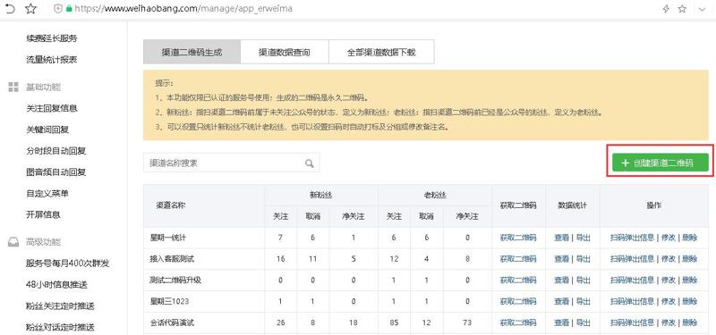 公众号生成带参数的二维码[?]可以用来统计粉丝来源,再通过获取用户基本信息显示粉丝昵称和头像,粉丝关注和取关都能统计到,可以自己写代码实现,也可以直接用微号帮平台渠道二维码生成功能实现效果。