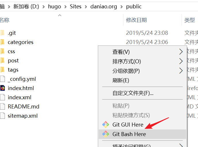 当然上面的命令看着是简单那的,但是我们还是要分解来说明,首先你可以进入public目录,右键打开Git bash here,如图: