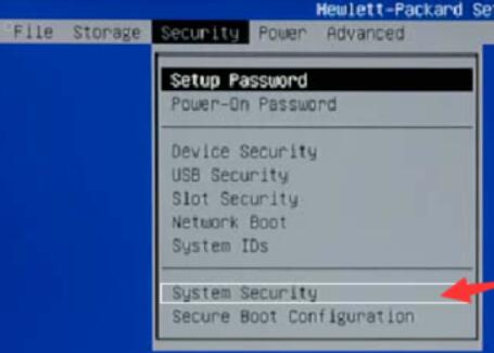 3、有些电脑没有这个功能,所以需要仔细找到这个【system security】,然后开启保存。