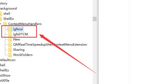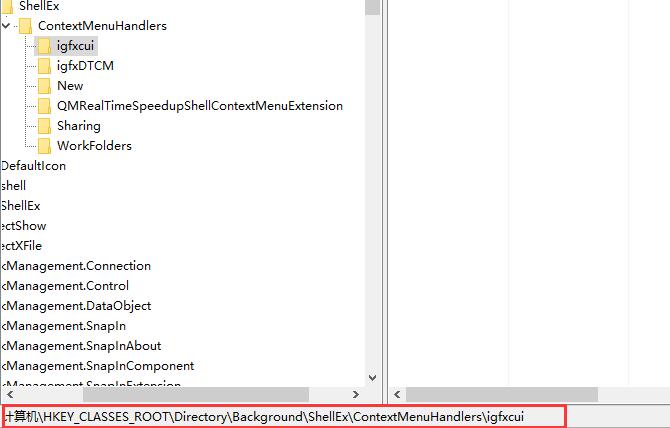 2.然后在注册表中依次展开文件夹:【HKEY_CLASSES_ROOT\Directory\background\shellex\ContextMenuHandlers\igfxDTCM】。