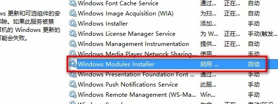 2.找到:Windows Modules Installer服务,查看是否被禁用