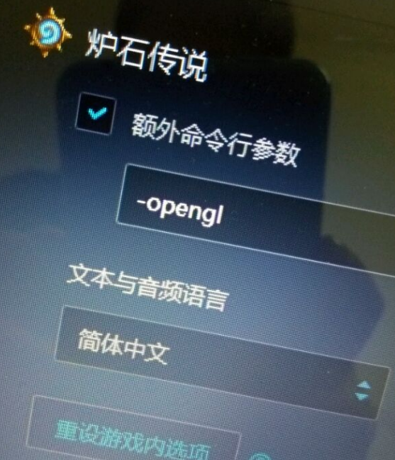 三、在战网客户端里的游戏设定里,找到炉石传说的额外命令行参数,打上对号,并在下面的框里输入-opengl