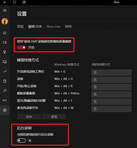 1.在Windows Xbox中关闭“当我玩游戏时进行后台录制”,或者直接关闭“使用游戏 DVR录制游戏剪辑和屏幕截图”。