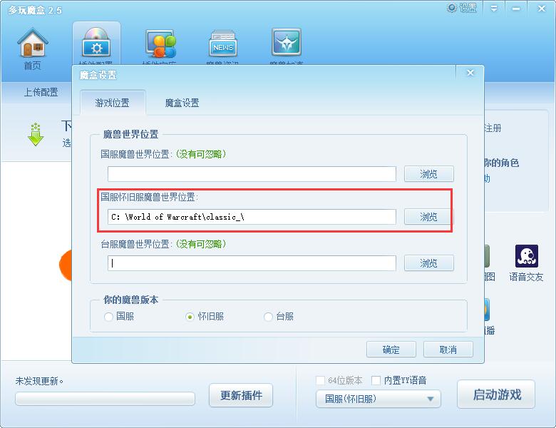 4、怀旧服和正式服的安装目录是不同的,需要正确的去选择。