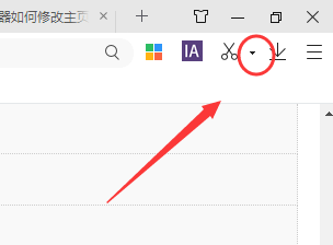 1、打开电脑中的360浏览器,找到右上角的剪刀图标,点击旁边的倒三角形。